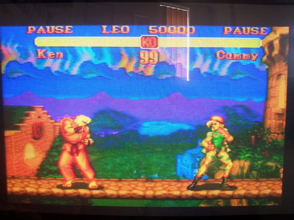 Composite. Cammy's stage is ideal to show a 2D game. Lots of colour bleed here.